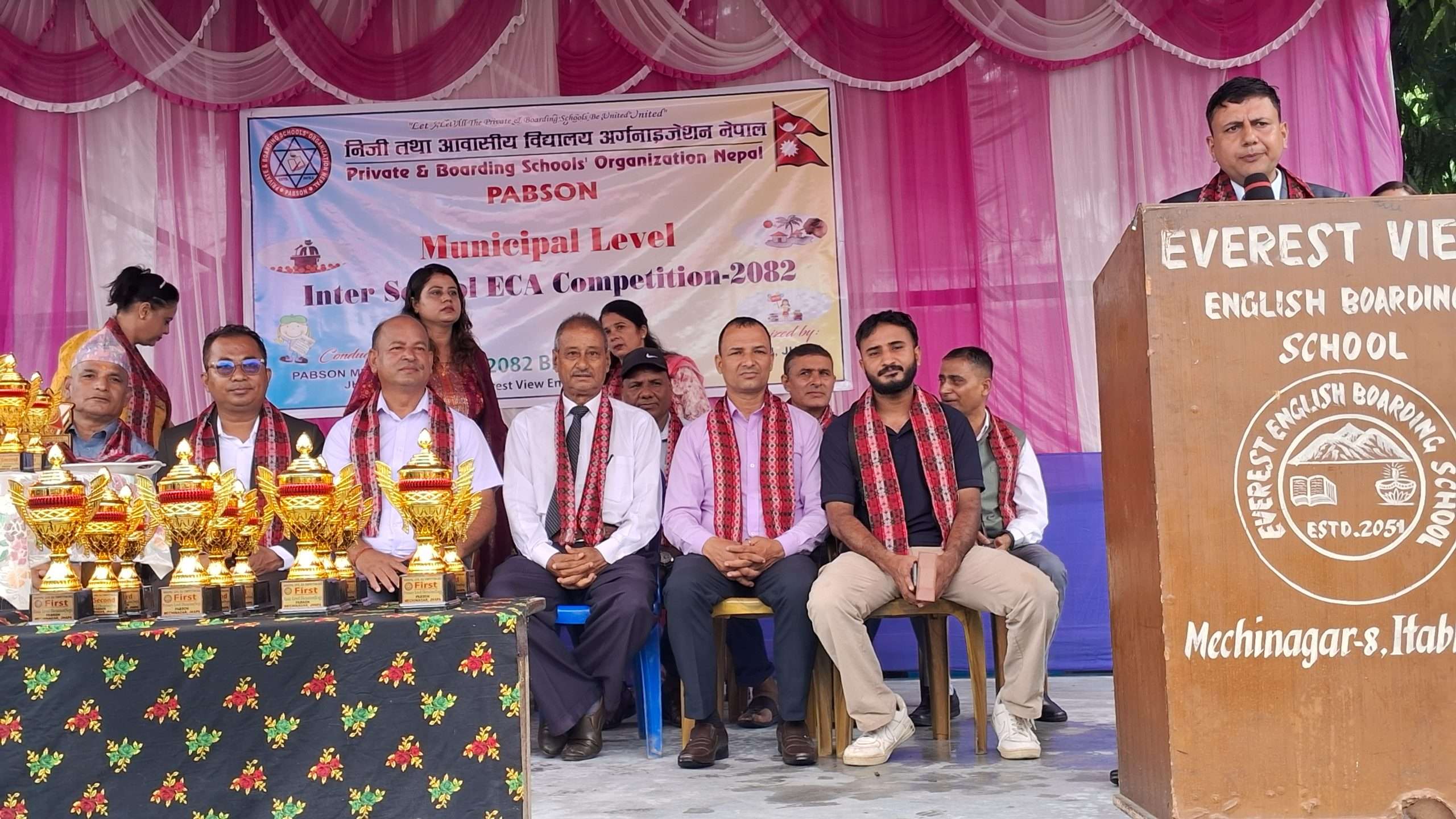 विद्यार्थीहरुको क्षमता र प्रतिभा प्रकट गर्ने उद्देश्यले मेचीनगर–८ स्थित एभरेष्ट भ्यू अंग्रेजी मावि परिसरमा आयोजित कार्यक्रममा ११ वटा विद्यामा प्रतियोगिता सम्पन्न भएको थियो।