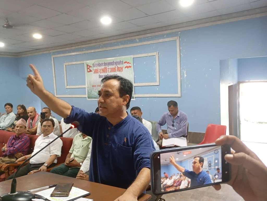 पार्टीमा संसद पुनस्थापना हुनु पर्ने मत पनि रहेको उल्लेख गर्दै आफूहरू नयाँ म्यान्डेटको पक्षमा दह्रोसँग उभिएको र निर्वाचनको विकल्प नभएको शर्माले स्पष्ट पार्नुभयो । ” पार्टीमा संसद पुनस्थापना हुनुपर्छ भन्ने मत पनि छ ” उहाँले भन्नुभयो, ” २०७९ को म्यान्डेटको औचित्य समाप्त भइसक्यो नयाँ निर्वाचन नै अबको निर्विकल्प समाधान हो ।” संसद पुनस्थापनामा आफ्नो कहिल्यै समर्थन नहुने उहाँले स्पष्ट पार्नुभयो । महामन्त्री शर्माले माग एउटा र मुड अर्को नबनाउन नेतृत्व र अन्य दलका नेतालाई आग्रहसमेत गर्नुभयो ।