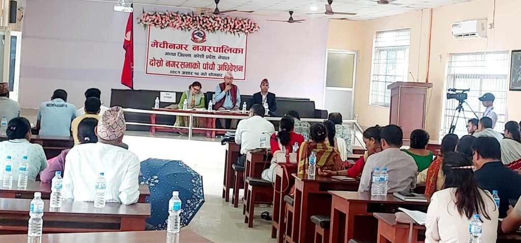 सोमबार नगर कार्यपालिकाको दोस्रो नगरसभाको पाँचौ अधिवेशनको उद्घाटन शत्रमा आर्थिक बर्ष २०८१/८२ को प्रस्तावित बजेट, नीति तथा कार्यक्रम सभा मार्फत प्रस्तुत गरिएको थियो । उक्त बजेट, नीति तथा कार्यक्रम बुधबार मेचीनगरका सर्वसम्मति जनप्रतिनिधिले पारित गरेका छन् ।