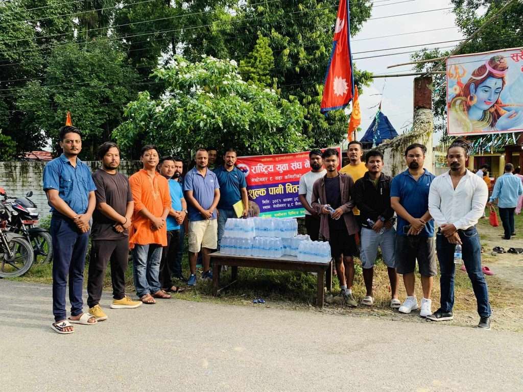 मेचीनगर । पुर्वको पवित्र धार्मिक तथा पर्यटकीय स्थल घैलाडुब्बा शिवालय पातालगंगा मन्दिर परिसरमा राष्ट्रिय युवा संघ मेचीनगर-८ वडा कमिटीले निःशुल्क पानी वितरण गरेको छ ।
