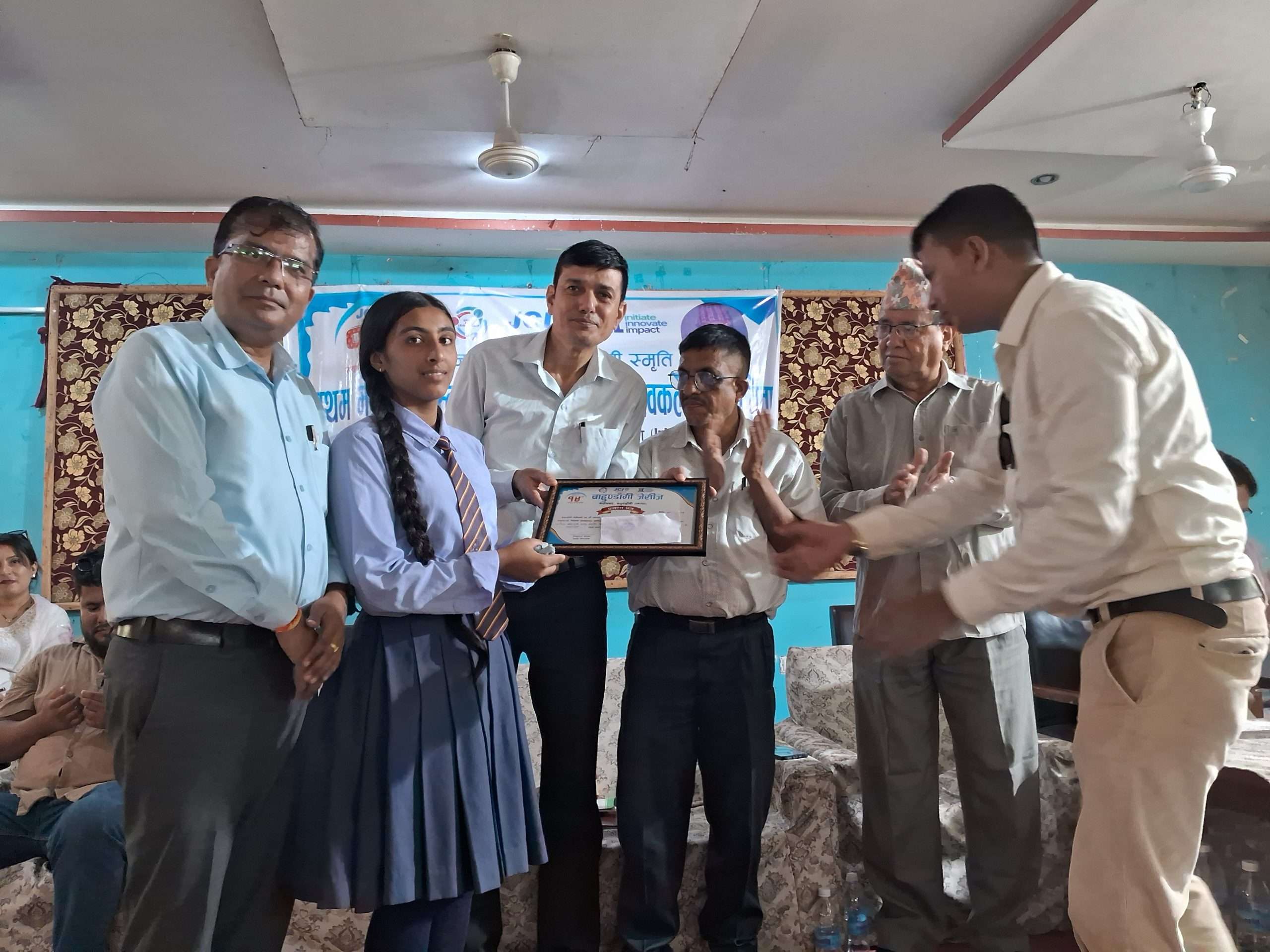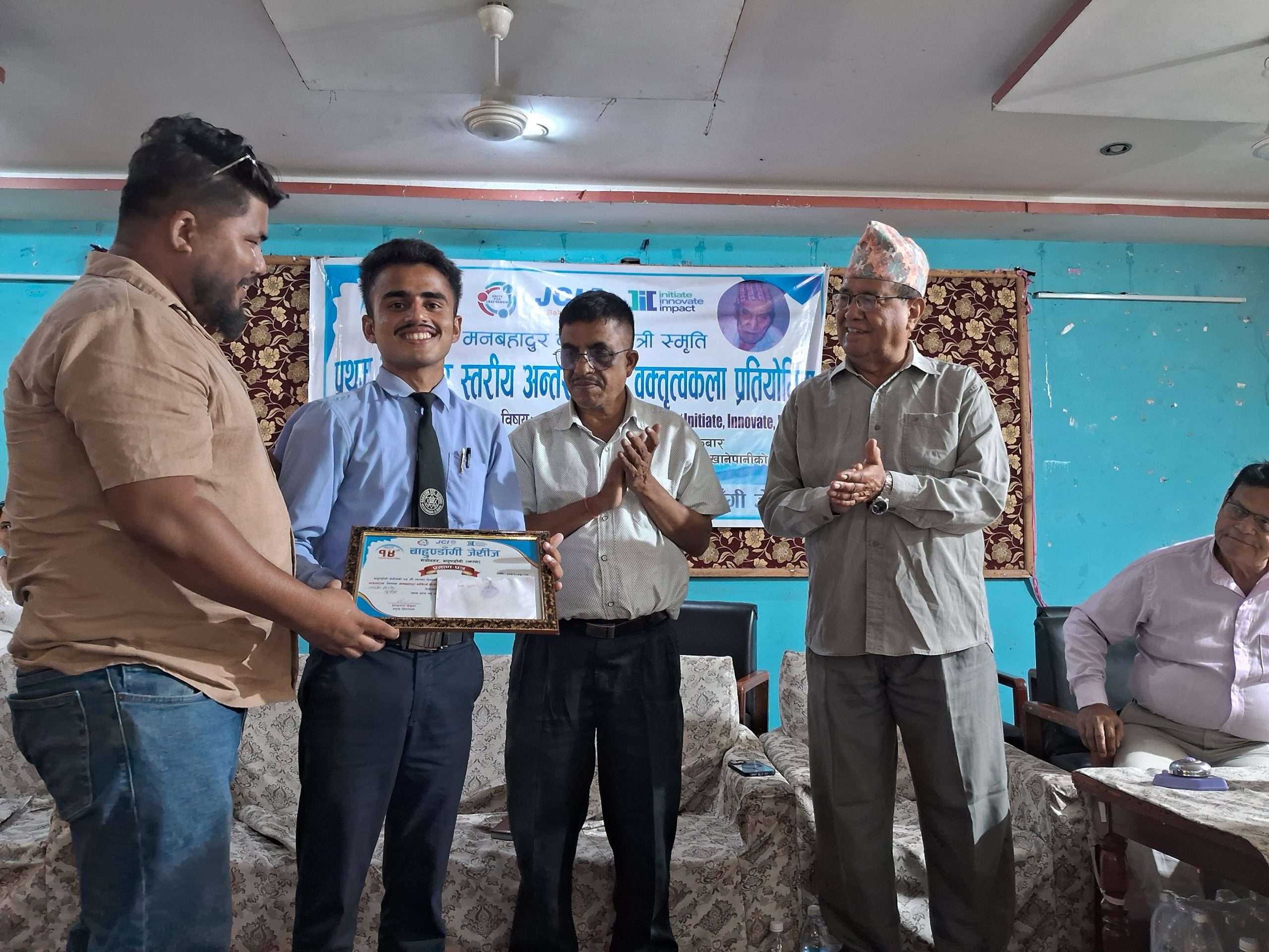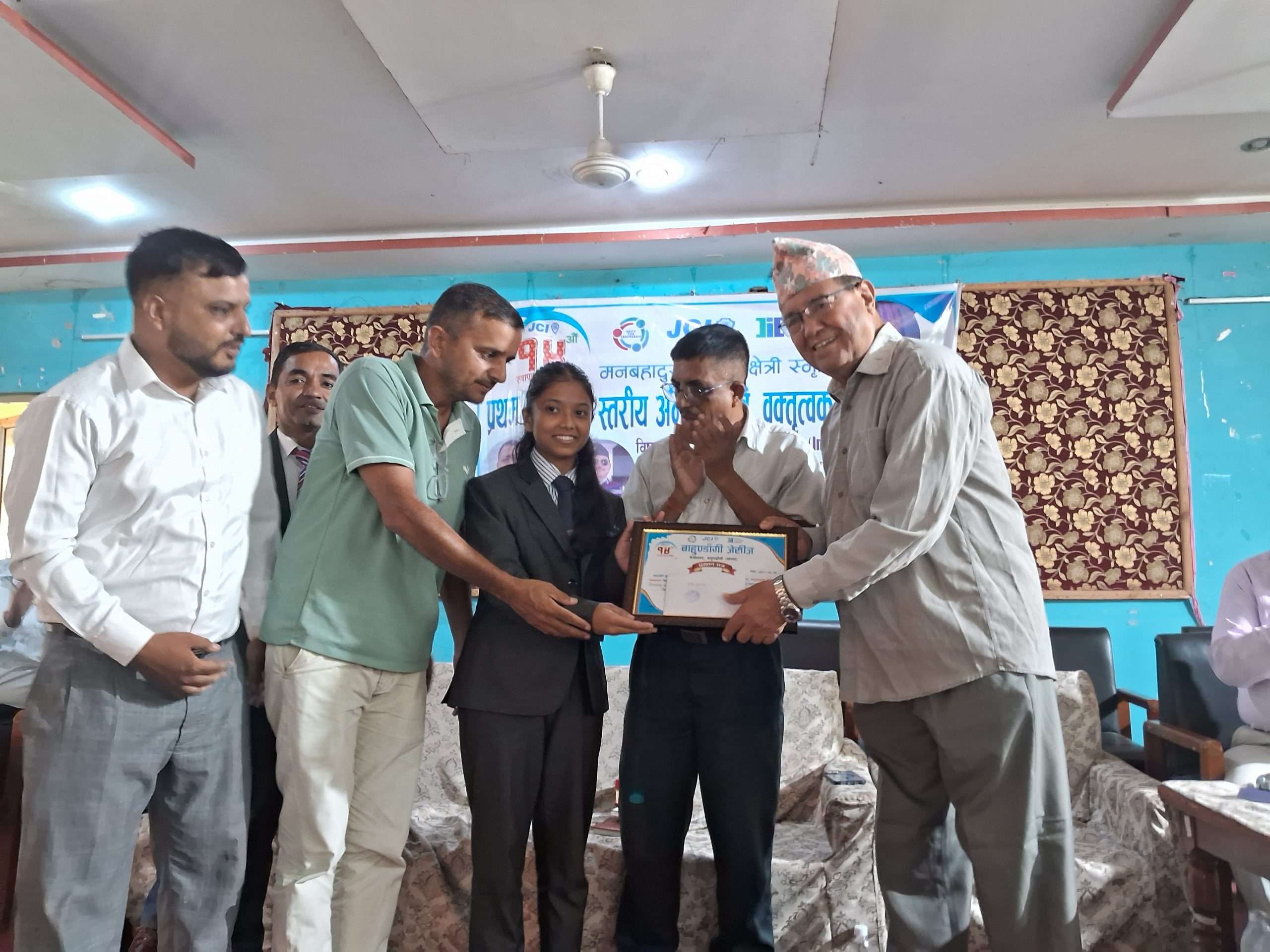 उनीहरुले क्रमशः नगद ५ हजार, ३ हजार र १ हजार तथा प्रमाण पत्र प्राप्त गरे । विजेतालाई प्रमुख अतिथि नगर शिक्षा अधिकारी होमनाथ भण्डारी, बानियाँ बन्धु समाजका केन्द्रीय सल्लाहकार हरिचरण बानियाँलगायतले पुरस्कृत गरे ।