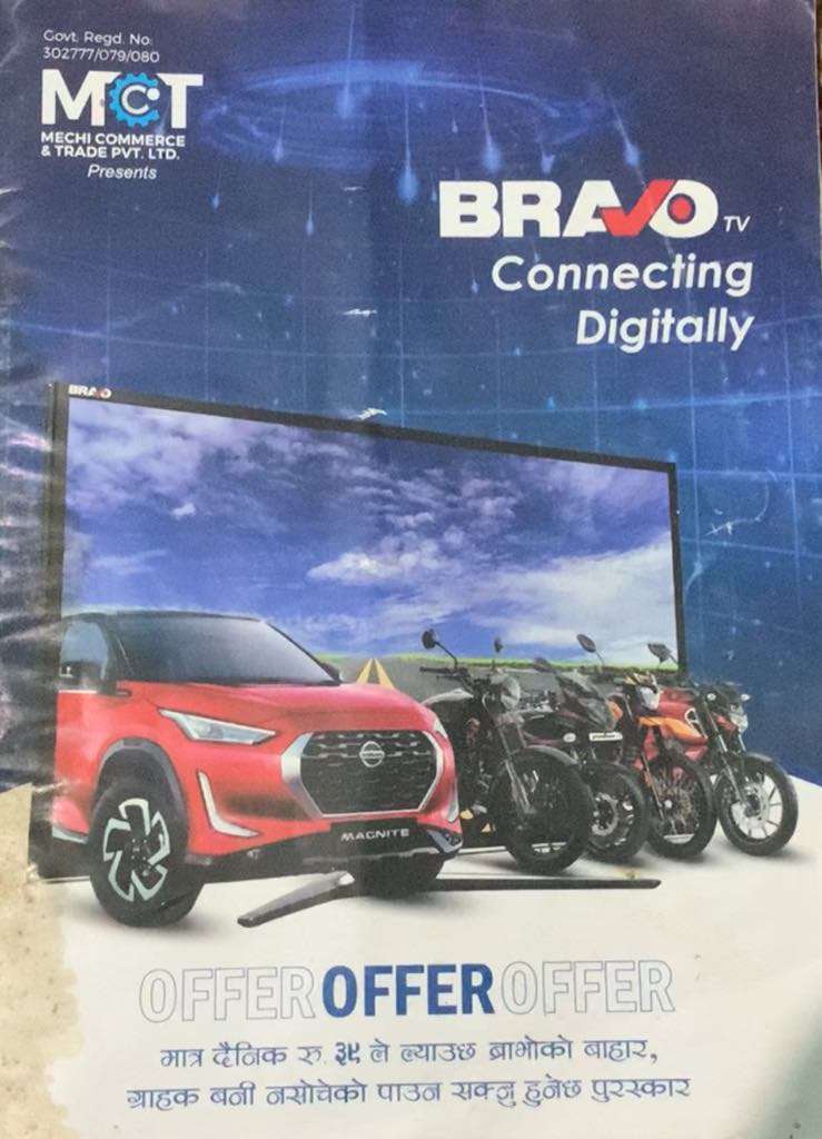 कम्पनिले ब्राभो ब्राण्डको टेलिभिजन सेट एकमुष्ठ रकम तिरेर किन्न नसक्ने ग्राहकलाई २७ किस्ताको सहुलियतमा चिठ्ठामार्फत उपलब्ध गराईने र मोटरसाईकल, कार फ्रिज जस्ता लोभलाग्दा उपहार पनि चिठ्ठामा पर्नसक्ने प्रलोभन देखाउँछ ।