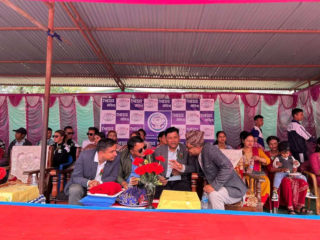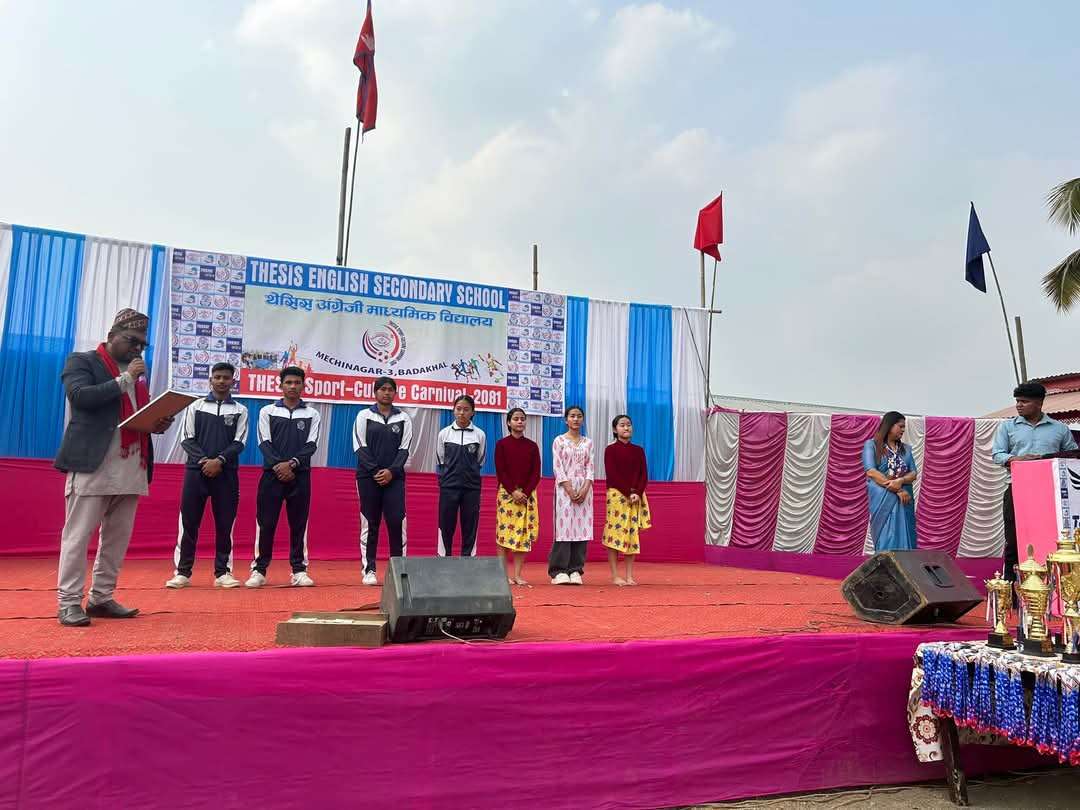मेचीनगर । झापाको मेचीनगर -३ मा अवस्थित थेसिस अंग्रेजी माध्यमिक विद्यालयले पत्रकार, विद्यार्थी,शिक्षक र अभिभावकलाई समेत सम्मान गर्दै “थेसिस स्पोर्ट कल्चर कार्निभल” कार्यक्रम सम्पन्न गरेको छ । विभिन्न खेलकुद तथा कला प्रस्तुत गर्दै थेसिस स्पोर्ट कल्चर कार्यक्रम सम्पन्न भएको हो । यसअघि फागुन ३ गते अन्तर विद्यालय छात्रा फुटबल च्याम्पियन प्रतियोगिता सम्पन्न गरेको थेसिसले लगत्तै अर्को कार्यक्रम सम्पन्न गरेको हो ।