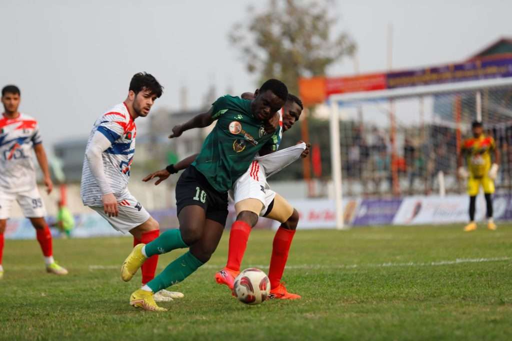 बंगलादेशले खेलको २४ औँ मिनेटमा अग्रता बनायो । साकिलको क्रस पासमा पेनाल्टी एरियाभित्र अनमार्क रहेका साहिदले गोल गरे । लगत्तै खेलको २६ औँ मिनेटमा बंगलादेशका विदेशी खेलाडी एस सिल्लाहले गोल गर्दै टिमलाई २–० ले अग्रता दोब्बर बनाए ।