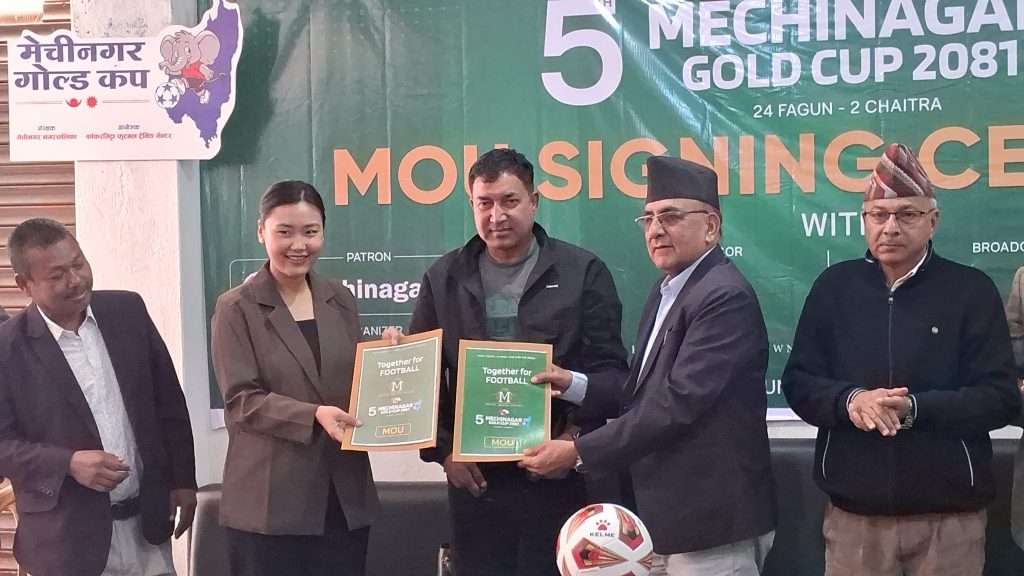 मेचीनगर। झापाको मेचीनगरमा आयोजना हुन लागेको पाँचौँ संस्करणको मेचीनगर गोल्डकपको मुख्य प्रायोजकमा होटल मेची क्राउन रहने भएको छ। आज आयोजक र प्रायोजक बीच सम्झौता पत्रमा हस्ताक्षर आदानप्रदान गर्दै गोल्डकपको प्रायोजकमा होटल मेची क्राउन रहने जानकारी गराइएको हो ।
