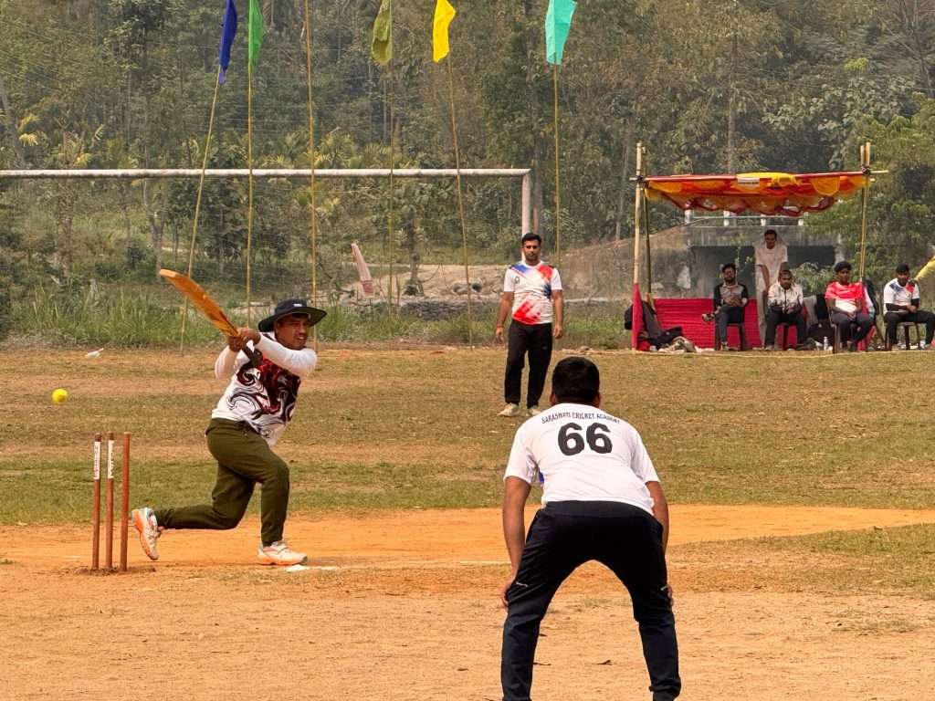 मेचीनगर । झापाको मेचीनगर -४ बाहुणडाँगी स्थित सरस्वती माविको खेल मैदानमा जारी इण्डो-नेपाल टि-ट्वान्टी क्रिकेट प्रतियोगिता अन्तर्गत आज भएको खेलमा सरस्वती क्रिकेट एकेडेमीलाई ६ विकेटले हराउँदै थण्डर -११ सेमिफाइनल प्रवेश गरेको छ।