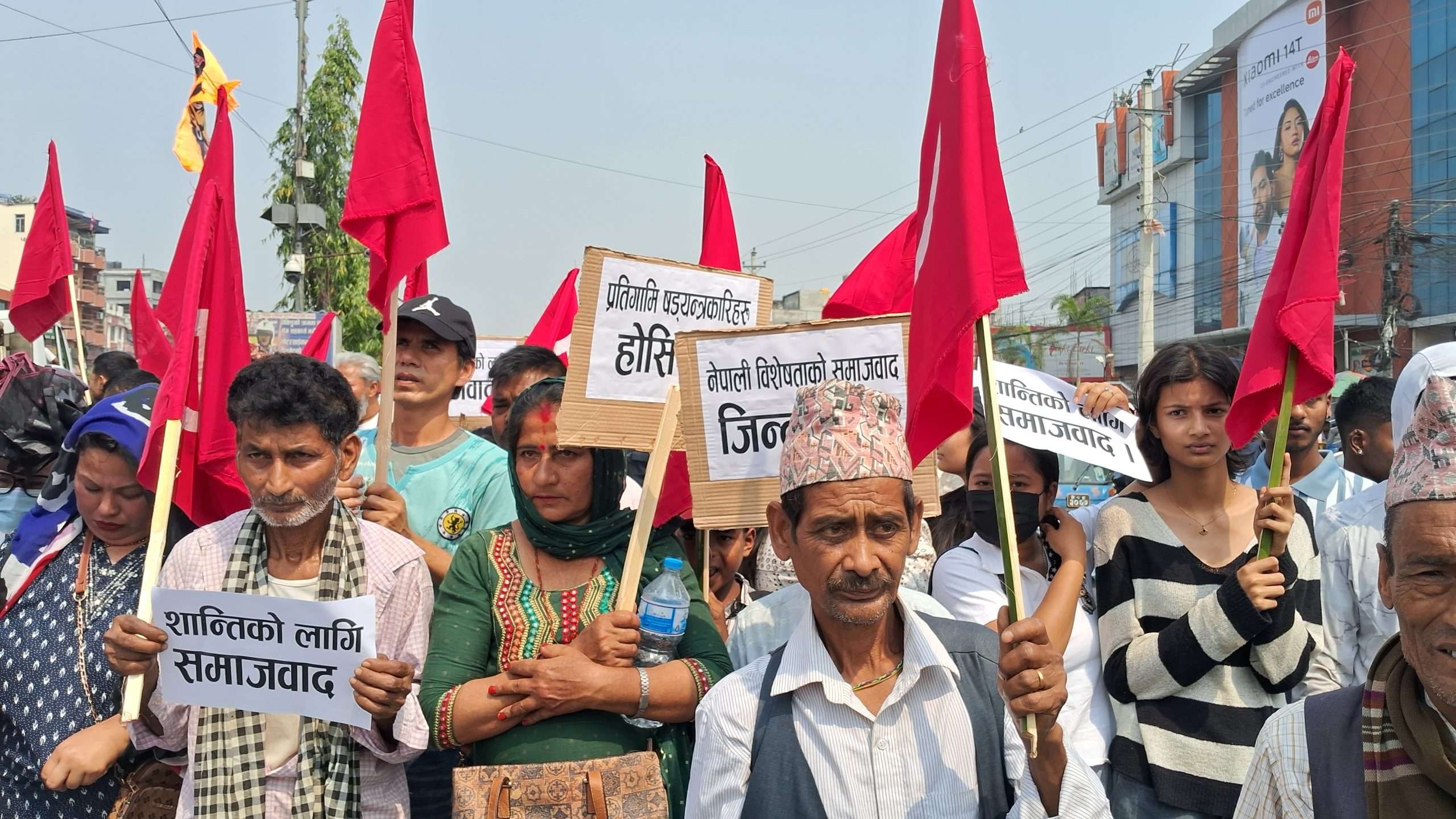 र्यालीमा प्रतिगमन मुर्दावाद, समाजवादी व्यवस्था जिन्दावाद, प्रतिगमन मुर्दावाद, विप्लव आउ देश बचाउ लगायतका नारा सहित प्लेकार्ड प्रदर्शन गरिएको थियोे ।