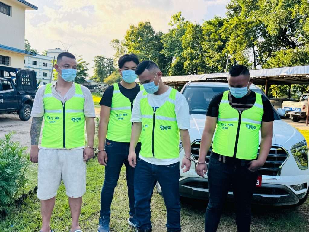 झापा । लागूऔषध (ब्राउन सुगर) सहित एक सवारी साधन र चारजना कारोबारी झापाबाट पक्राउ परेका छन्।