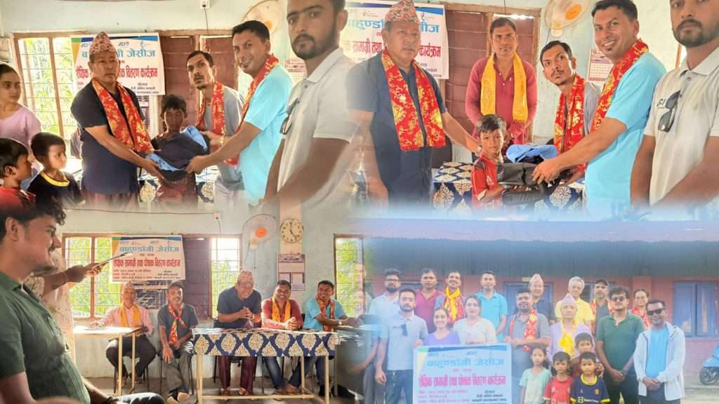 मेचीनगर, झापा । बाहुण्डाँगी जेसीजले अति विपन्न अवस्थाका विद्यार्थीहरूलाई शैक्षिक सामग्री तथा पोशाक वितरण गरेको छ। मेचीनगर–१ स्थित पवित्र माध्यमिक विद्यालयमा आयोजित कार्यक्रममा तीन जना विद्यार्थीलाई सहयोग सामग्री वितरण गरिएको हो।