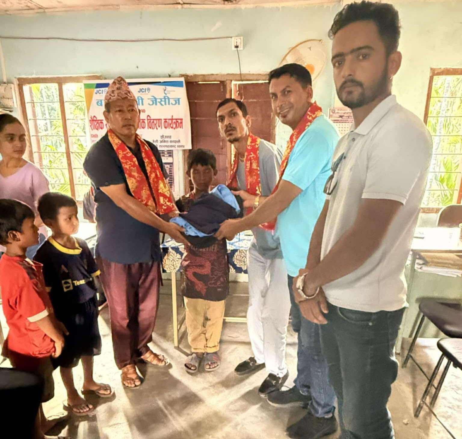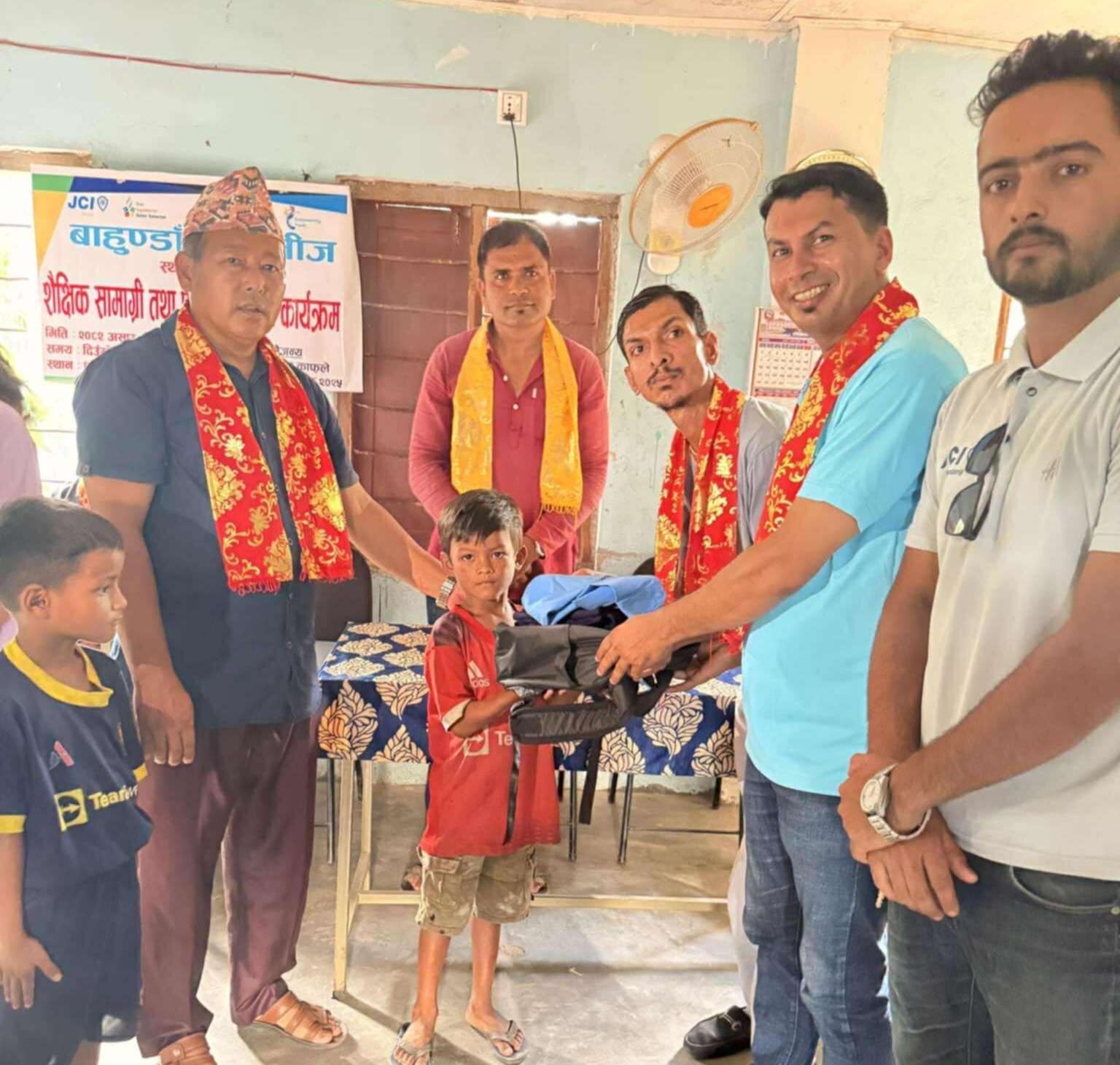 विद्यालयका शिक्षक तथा जेसीज सदस्य जेसी विष्णु अधिकारीका अनुसार बाँडिएको सामग्रीमा पोशाकसहित शैक्षिक सामग्रीहरू समावेश छन्।